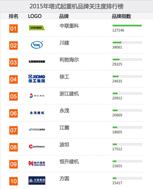 榜单是基于2015年中国路面机械网及工程机械电商网海量用户对其平台内所有塔式起重机品牌、产品的浏览及在线询价次数而生成的。该榜单能在一定程度上体现行业用户对品牌及产品的偏好,同时在一定范围内反映企业品牌和产品在用户群体中的影响力和覆盖程度。