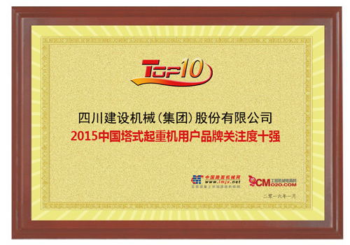 近日,中国路面机械网及工程机械电商网发布“2015中国工程机械用户品牌关注度排行榜”,四川建设机械(集团)股份有限公司进入“2015中国塔式起重机用户品牌关注度排行榜”前十强。