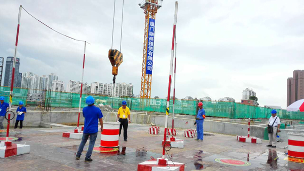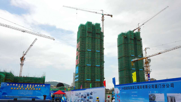本次比赛地点设在海沧生态花园项目施工部。该项目共有川建8台塔机参与施工,其中6台C6013塔机、2台C6010塔机。该项目为民建住宅,建筑面积约20万平方米,为 46层超高层住宅,最终塔机使用高度将达到150米。本次比赛该项目8台塔机作为比赛专用塔机,其中5台塔机用于比赛,另有3台塔机作为备用。