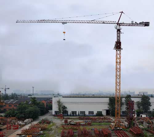 C7036塔机适用于各种高层建筑及水电、桥梁工程。最大起重量16t,端部吊重3.6t,最大工作幅度70m,额定起重力矩335t.m。标准节断面为2m和2.5 m两种,均为片式组合式标准节,2m断面标准节行走式独立高度分别有66.25m和53.6m两种,固定式独立高度有60.65m和51.7m两种。2.5m断面标准节行走式独立高度78.15m,固定式独立高度71.04m。