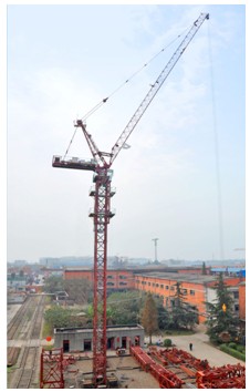 该机采用更加轻量化的三角形结构起重臂和川建通用的1.6米断面片式标准节。其端部吊重1.5t,最大起重量6t,工作幅度达到40米,起重臂仰角为10°—84.4°,当起重臂仰角达到84.4°时,行走式最大起升高度可达到69.99米。各机构均采用国内外先进技术,构造合理,就位准确。该机专配24BWZ25变幅机构,采用绕线式电机,涡流制动器,调速性能好,运行平稳;采用蹄式制动与钳式制动,运行更加安全可靠。起升机构配有33LVF15和33RPC15两种机构,其中33LVF15为交流变频起升机构,能实现完全无级调速,充分利用电机拖动性,调速范围宽,机构工作效率高;而33RPC15则采用远极比三速鼠笼式电机,重载低速、轻载高速。微速稳定性好、结构简单、体积小、重量轻、性能先进。回转机构为OMD45,该机构采用先进的电力、电子技术,电磁联轴节和行星减速器无极调速,起动扭矩大、运行平稳、性能先进、可靠。