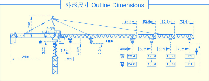 SCM-M900(32t)塔式起重机,是我公司吸收国外塔机技术,自行设计制造的大型上回转自升式塔式起重机。该机型设计新颖,起升、回转、变幅、行走、顶升等机构均采用国外技术,性能先进可靠。 该机具有轨道行走式、固定附着式,多种使用类型。变幅有单小车和双小车两种,单小车情况下最大起重量32t,端部吊重11t;双小车情况下最大起重量32t,端部吊重12t。
